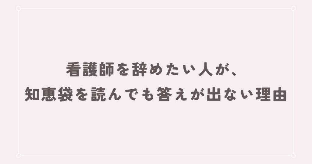 看護師を辞めたい人が、知恵袋を読んでも答えが出ない理由